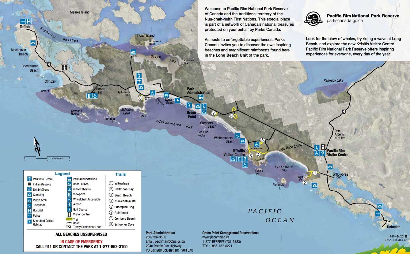 Famous for its expansive sandy beaches, over 100 hundred small islands and inlets, pounding surf, and lush coastal rainforest. The area provides excellent opportunities for beachcombing, surfing, hiking, and wildlife viewing. The interpretive center at the Kwisitis Visitor Centre offers educational displays and programs to help visitors learn about the park's ecology and cultural history.