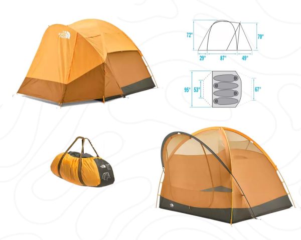 All of our tents are top quality, clean and in excellent repair. This package is based on our 4 person North Face and Marmot tents and includes our standard package contents.