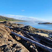 The Long Beach Trail in Pacific Rim National Park, offers an exhilarating hiking experience along one of Canada's most iconic shorelines. This trail, largely flat and accessible, spans the length of Long Beach itself, which is approximately 10 kilometers end-to-end. However, the trail's length can be tailored to a hiker's preference, making it suitable for both short walks and longer hikes. Traversing the trail, hikers are treated to expansive views of the Pacific Ocean, with its powerful waves that draw surfers from around the world. The beach is bordered by lush, coastal rainforest, and the area is rich with wildlife; it's not uncommon to spot eagles soaring overhead, or to find traces of wolves and black bears along the beach. The trail also passes by tidal pools teeming with marine life and rock formations that add an adventurous element to the hike. The Long Beach Trail is best enjoyed in the summer months, though the wild beauty of storm season can also be a draw for visitors in the winter.