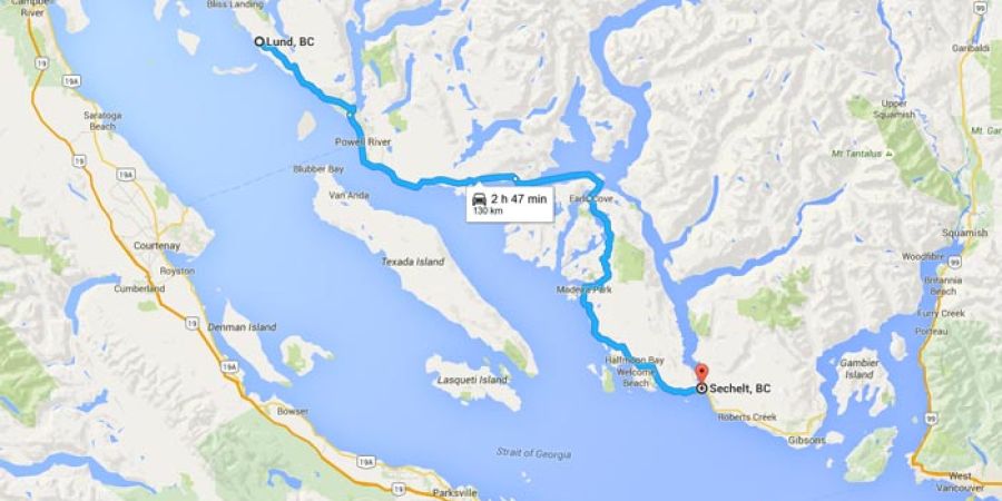A ferry crossing from Horseshoe Bay to Langdale and a quick drive will bring you to the Sechelt. Another ferry crossing from Earls Cove to Saltery Bay and a scenic drive will bring you all the way to Powell River and Lund.