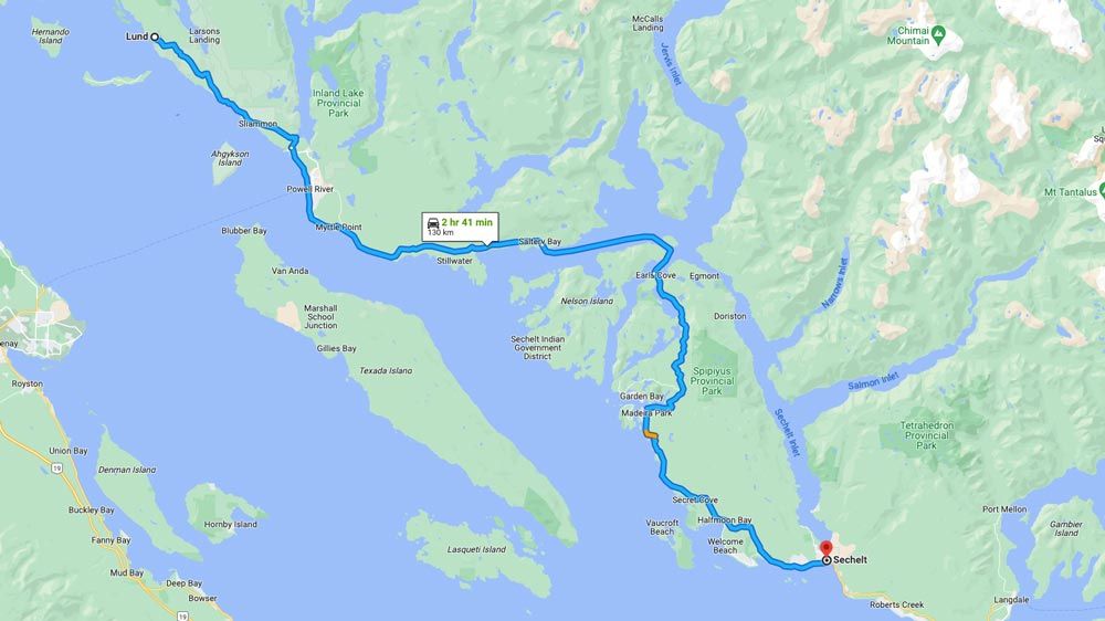 Departing from Powell River, a ferry crossing from Saltery Bay to Earls Cove, followed by a picturesque drive, will lead you to Sechelt.