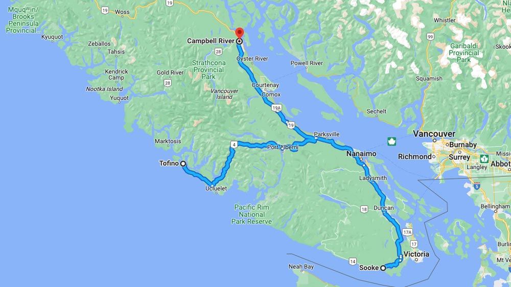 Take a ferry from Horseshoe Bay or Tsawwassen (in North or South Vancouver) to Departure Bay (Nanaimo), and then enjoy a 3 hour drive to reach Pacific Rim National Park, Tofino, or Ucluelet.